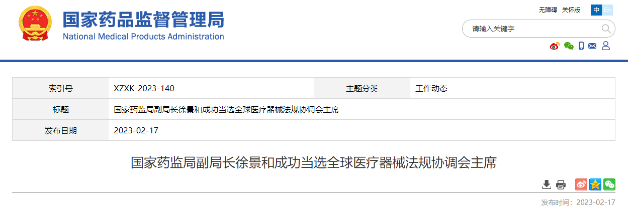 利雅得時(shí)間2月16日下午4時(shí),國(guó)家藥監(jiān)局副局長(zhǎng)徐景和成功當(dāng)選第27屆全球醫(yī)療器械法規(guī)協(xié)調(diào)會(huì)(GHWP)主席。這在我國(guó)醫(yī)療器械監(jiān)管?chē)?guó)際化進(jìn)程中具有重要意義。