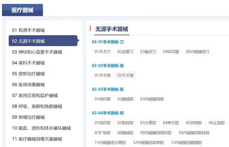 一是界面更優(yōu)化。網(wǎng)站通過(guò)折疊目錄的形式展示醫(yī)療器械分類目錄和體外診斷試劑分類子目錄。公眾可逐級(jí)點(diǎn)擊分類目錄,快速定位至具體產(chǎn)品頁(yè)面,并一鍵查詢?cè)摦a(chǎn)品所對(duì)應(yīng)的相關(guān)技術(shù)文件。