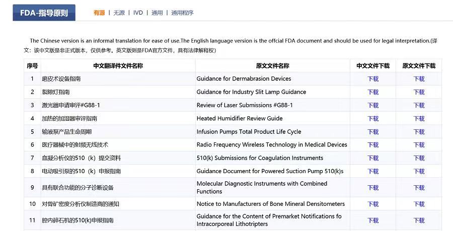 三是類型更多樣。除中國(guó)指導(dǎo)原則外,欄目新建FDA指導(dǎo)原則、歐盟指導(dǎo)原則板塊,向公眾提供中心組織翻譯并校對(duì)的FDA、歐盟醫(yī)療器械指南。按照有源、無(wú)源、通用等進(jìn)行分類,原文、中文一一對(duì)應(yīng),同步提供下載鏈接。