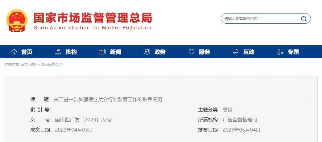 為維護醫(yī)療美容市場秩序,切實保障人民群眾身體健康和生命安全,促進醫(yī)療美容行業(yè)高質(zhì)量發(fā)展,依據(jù)《國務(wù)院辦公廳關(guān)于深入推進跨部門綜合監(jiān)管的指導(dǎo)意見》(國辦發(fā)〔2023〕1號)和相關(guān)法律法規(guī)規(guī)定,現(xiàn)就進一步加強醫(yī)療美容行業(yè)監(jiān)管工作提出如下指導(dǎo)意見。