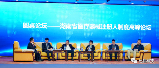 在高峰論壇上,湖南省藥品審評(píng)認(rèn)證與不良反應(yīng)監(jiān)測中心副主任彭慧芳宣講了“湖南省醫(yī)療器械審評(píng)審批制度改革概況”,全軍普通外科醫(yī)療??浦行母敝魅危魅吾t(yī)師、北大醫(yī)療腫瘤診療中心主任醫(yī)師徐迎新教授分享了“轉(zhuǎn)化醫(yī)學(xué)平臺(tái)的建立與存在的問題”。迅佳科技杜曉東、上海漢盛蔣海洪、全軍普通外科醫(yī)療??浦行母敝魅涡煊?、醫(yī)道社社長湯國平、湘潭市市場監(jiān)督管理局局長莫秋華、湘潭市中心醫(yī)院副院長李紹杰就“湖南省醫(yī)療器械注冊人制度”的議題開展了圓桌論壇。