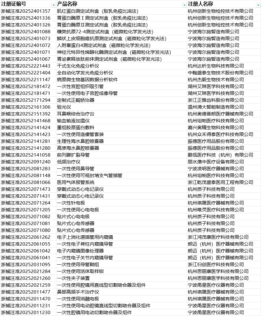 注冊(cè)人制度下,浙江省2025上半年新增45項(xiàng)二類醫(yī)療器械注冊(cè)證,其中: