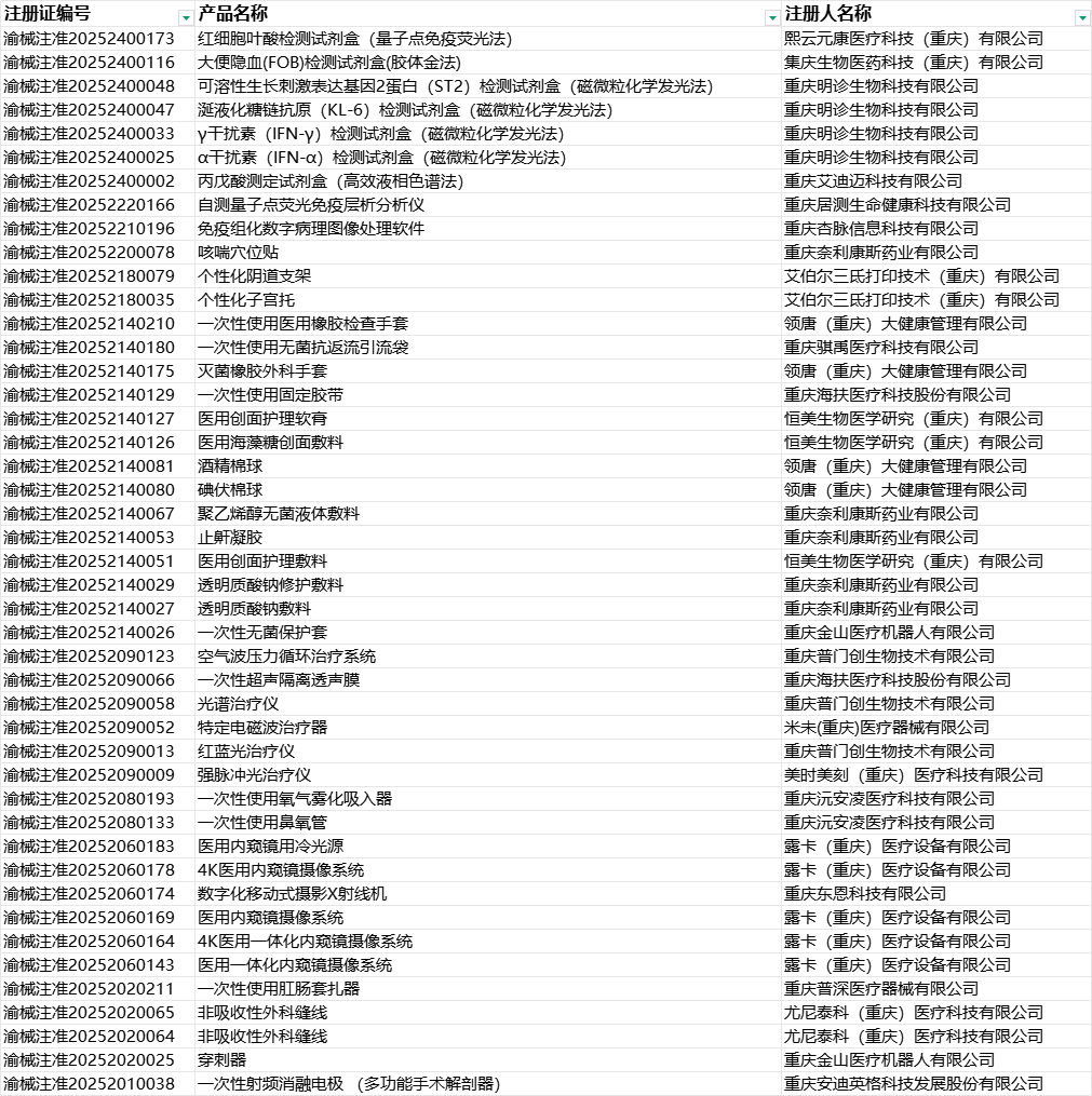 2025年上半年重慶市二類醫(yī)療器械注冊人制度下,重慶市全市新增的45個二類器械產(chǎn)品,其中跨省委托占比高達31.1%,湖南、陜西、廣東成為主要技術協(xié)作方。按產(chǎn)品類型分布如下: