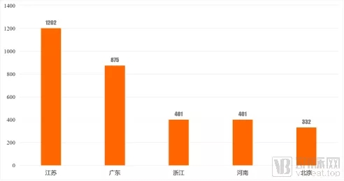圖7 2019年國內(nèi)二類醫(yī)療器械首次注冊數(shù)量TOP5地區(qū);