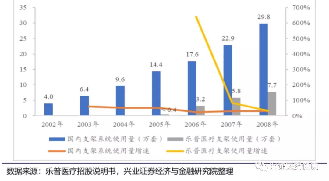從產(chǎn)品覆蓋區(qū)域來講,國外企業(yè)的產(chǎn)品主要集中在經(jīng)濟(jì)發(fā)達(dá)地區(qū)如北京、上海、廣東等地,而國內(nèi)企業(yè)除上述區(qū)域外,已經(jīng)進(jìn)入所有省市級(jí)及部分地縣級(jí)醫(yī)院。以樂普醫(yī)療為例,2017年底,公司實(shí)現(xiàn)了全國所有省份的全覆蓋,特別是廣東、北京、河南、河北等高值耗材10個(gè)大省,至今仍處于放量期。對(duì)于部分區(qū)域的重點(diǎn)客戶,公司同時(shí)采取了直銷策略。此外,公司還開創(chuàng)閉環(huán)銷售渠道,即通過與基層醫(yī)院建立心血管合作中心,直接向這些醫(yī)療機(jī)構(gòu)提供設(shè)備、心臟支架及藥品,其它品牌產(chǎn)品無法參與競(jìng)爭(zhēng)。正是通過多渠道的銷售模式,公司產(chǎn)品銷量迅速增加。國內(nèi)心血管支架的競(jìng)爭(zhēng)格局在2009年基本形成,之后基本維持穩(wěn)定。在2005-2009年期間,國內(nèi)廠商享有行業(yè)高增速以及進(jìn)口替代的雙重驅(qū)動(dòng)。以樂普醫(yī)療為例,2002-2008年國內(nèi)支架使用數(shù)量復(fù)合增速40%,樂普醫(yī)療支架使用量2005-2008年復(fù)合增速為161.1%,高于行業(yè)增速。2012-2014年由于行業(yè)增速放緩,公司原有產(chǎn)品降價(jià)壓力增大,新產(chǎn)品Nano+于2011年上市,還未實(shí)現(xiàn)放量,導(dǎo)致公司2012-2014年支架收入增速為個(gè)位數(shù),2013年甚至為負(fù);2014年后公司支架業(yè)務(wù)重拾升軌,2014-2017年復(fù)合增長(zhǎng)率達(dá)到19.5%,2017年實(shí)現(xiàn)營(yíng)收11.71億元,同比增長(zhǎng)21.4%。