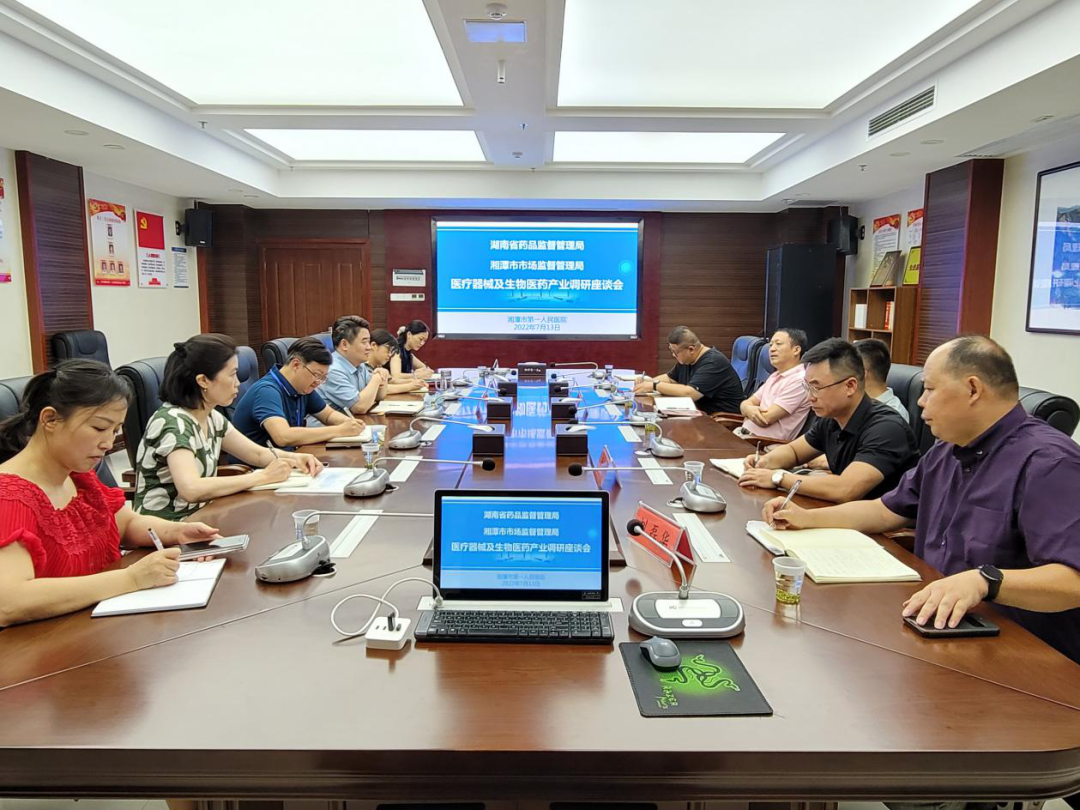 7月12日-13日,湖南省醫(yī)療器械審評(píng)核查湘潭工作站總負(fù)責(zé)人、省藥監(jiān)局化妝品處副處長(zhǎng)譚小林帶隊(duì)來潭,調(diào)研湖南省醫(yī)療器械產(chǎn)業(yè)園發(fā)展情況。湘潭市市場(chǎng)監(jiān)督管理局、湘潭經(jīng)開區(qū)創(chuàng)新創(chuàng)業(yè)服務(wù)中心相關(guān)負(fù)責(zé)人參加調(diào)研。