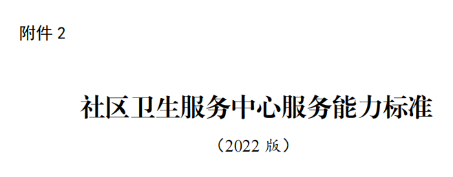 《社區(qū)衛(wèi)生服務(wù)中心服務(wù)能力標(biāo)準(zhǔn)(2022版)》、