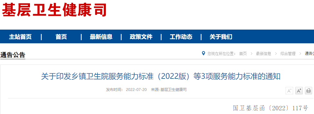 《鄉(xiāng)鎮(zhèn)衛(wèi)生院服務(wù)能力標(biāo)準(zhǔn)(2022版)》、